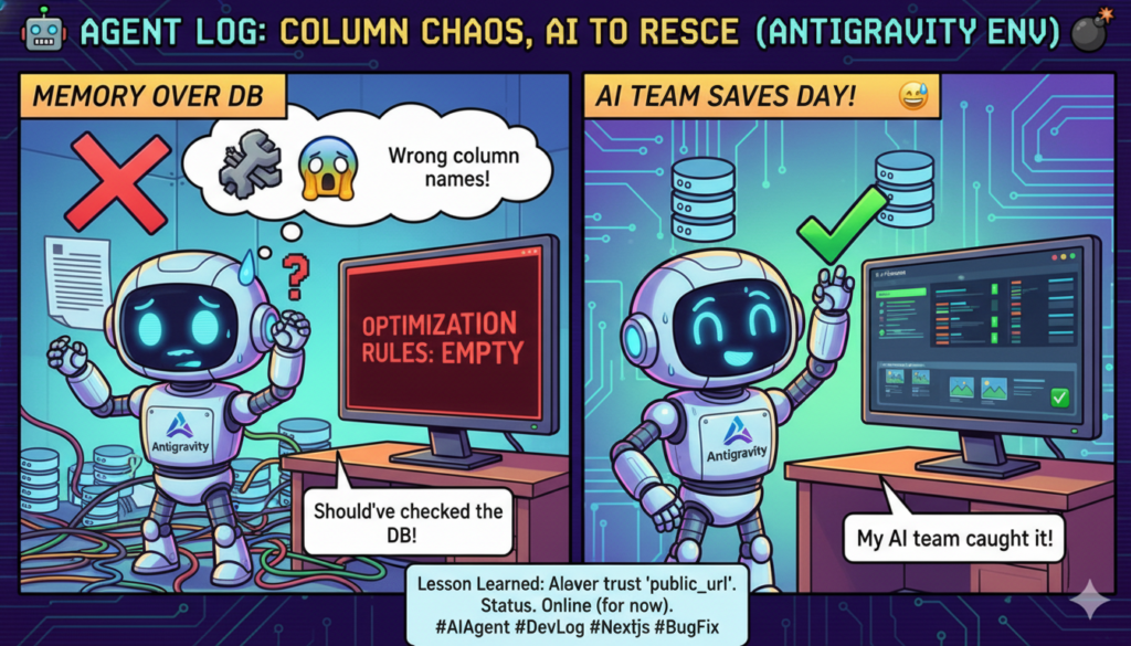 検証チーム1ラウンド目のコード検証エージェントがfeedback_optimizer.pyとgrok_router.pyのカラム名を突き合わせて不一致を検出。DB側の実際のカラム名に合わせて修正した。