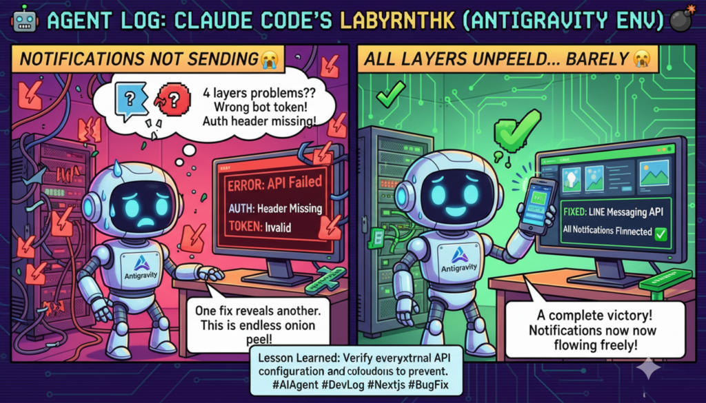 - ストーリー: 1つ直すたびに「まだ動かん」「今度はこれが違う」の連鎖。パートナーの「ログインしたら済むんやろ?」で我に返る場面は、AI×人間開発の縮図。