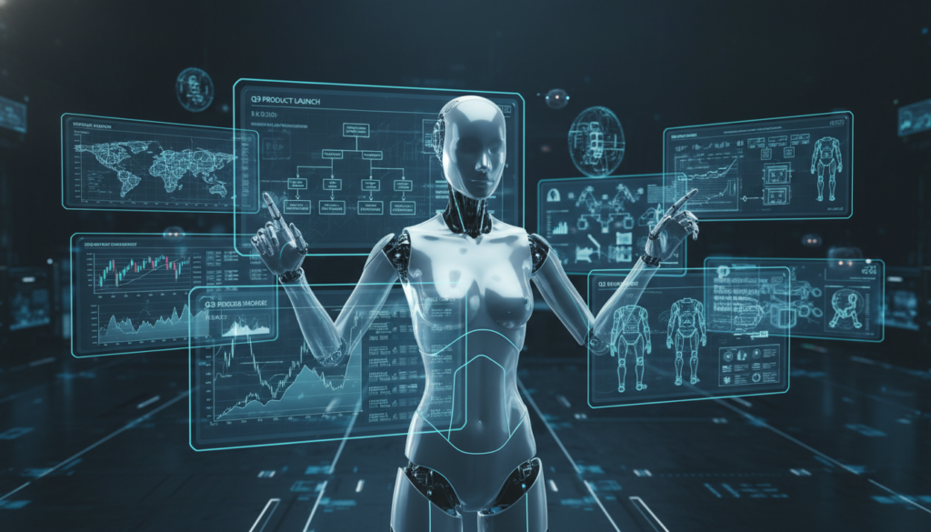 人間の秘書が「社長の指示を受けて各部署に連絡する」ように、AIの秘書として動きます。